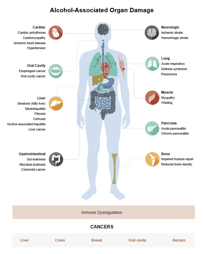 I think you get the point! Alcohol causes a cascade of harm, both short and long-term.
